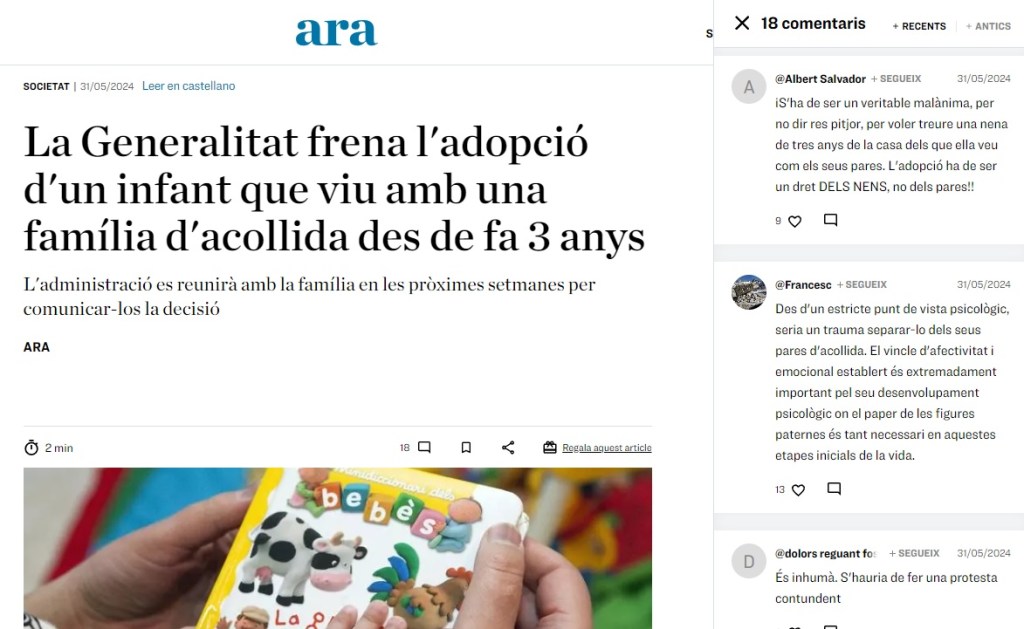 Solo quiero hacer una aportación más y es que nadie en este país acoja a ningún niño excepto aquellas familias con intereses económicos, es decir familias que estén de acuerdo con las políticas del sistema, acogimientos familiares que no van más lejos de utilizar a los hogares como CRAES individualizados a cambio de unos ingresos mensuales (acogimientos simples , de diagnóstico , etc..)